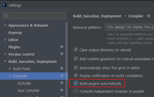 - Settings > Build, Execution, Deployment > Compiler > Build project automatically 체크